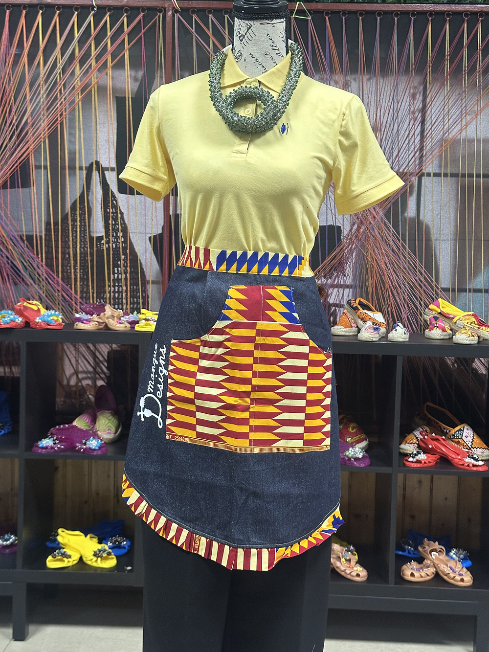 Abanico con diseños verde, amarillos, rojos, azules y amarillos.