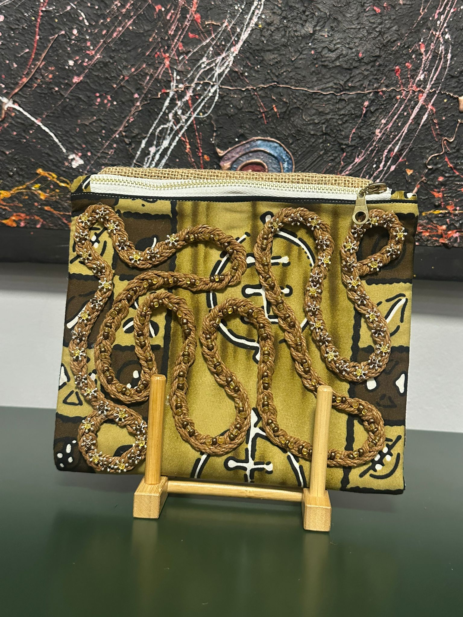 Collar dorado con adornos marrones