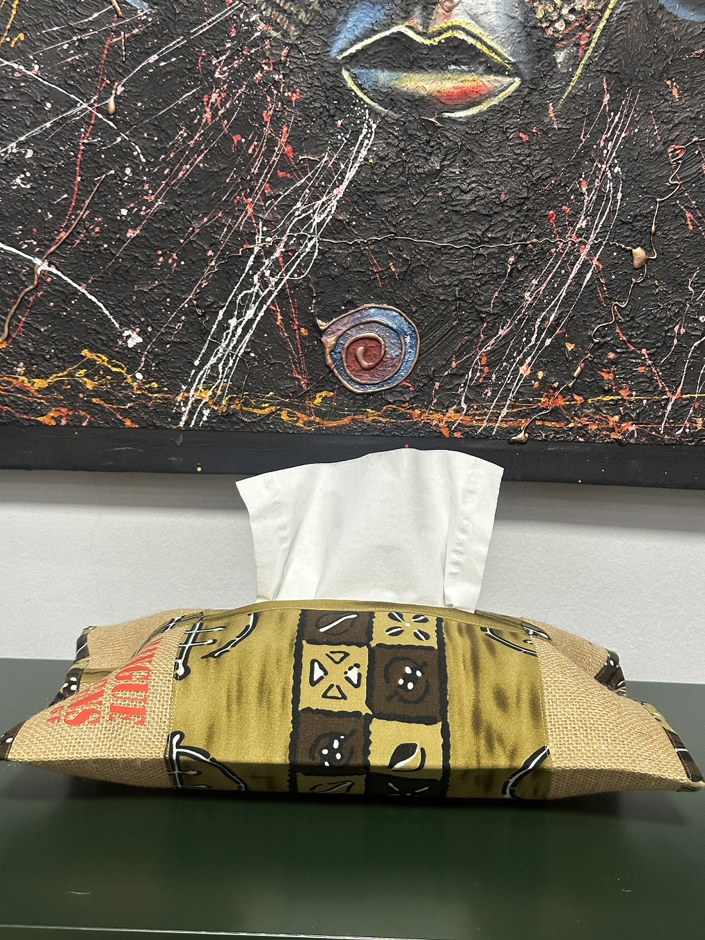 Servilletero con detalles marrones y dorados