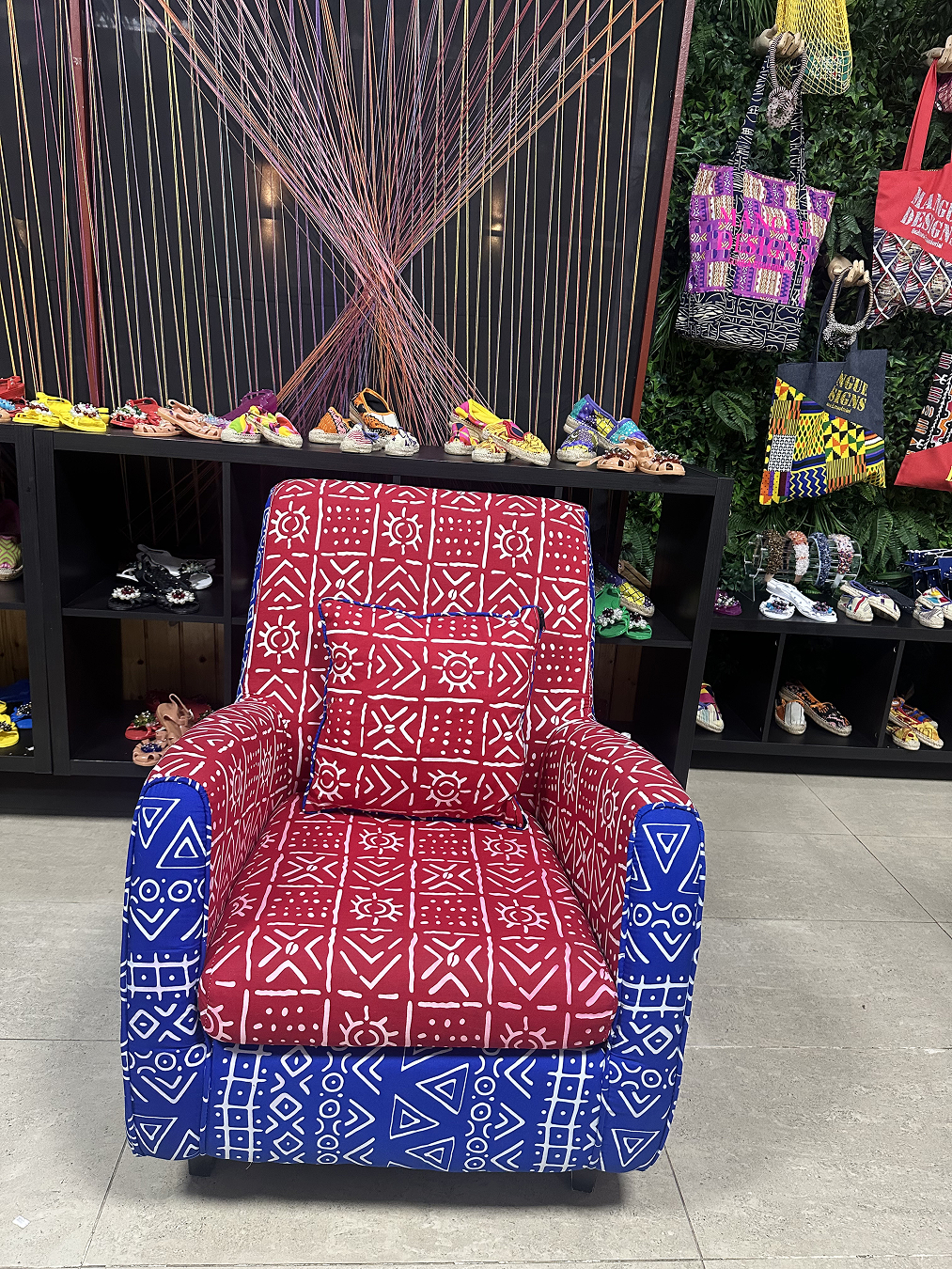 Sofá rojo con azul